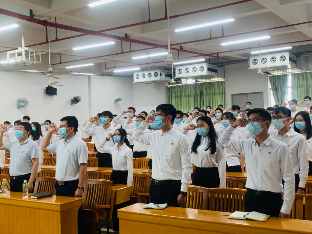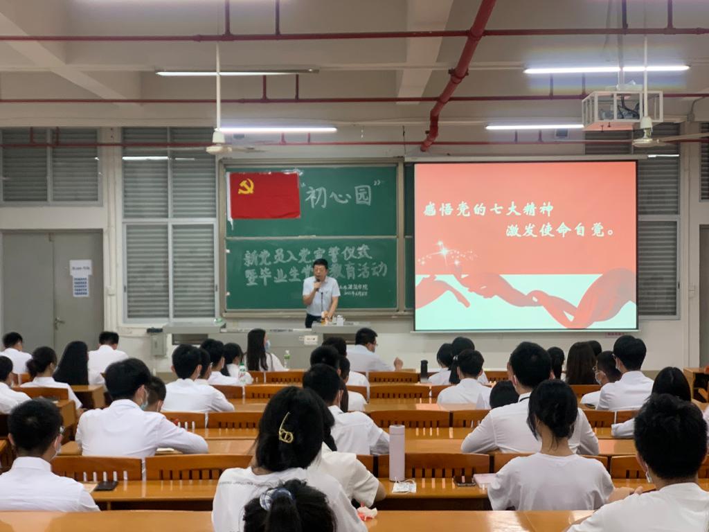 為了推進黨史學習教育走深走實,推動學生黨員在學思踐悟中堅定理想信念,在奮發有為中踐行初心使命,做到學史明理、學史增信、學史崇德、學史力行。2021年6月8日下午,土木建筑學院黨委于北主樓205組織開展“初心園”之新黨員入黨宣誓儀式暨畢業生黨員教育。學院黨委書記吳卓強,黨委宣傳委員、兼職組織員胡偉堅,專職組織員莊浴婷和學院72名畢業生黨員以及新發展的41名預備黨員參加上述活動。此次活動由莊浴婷主持。