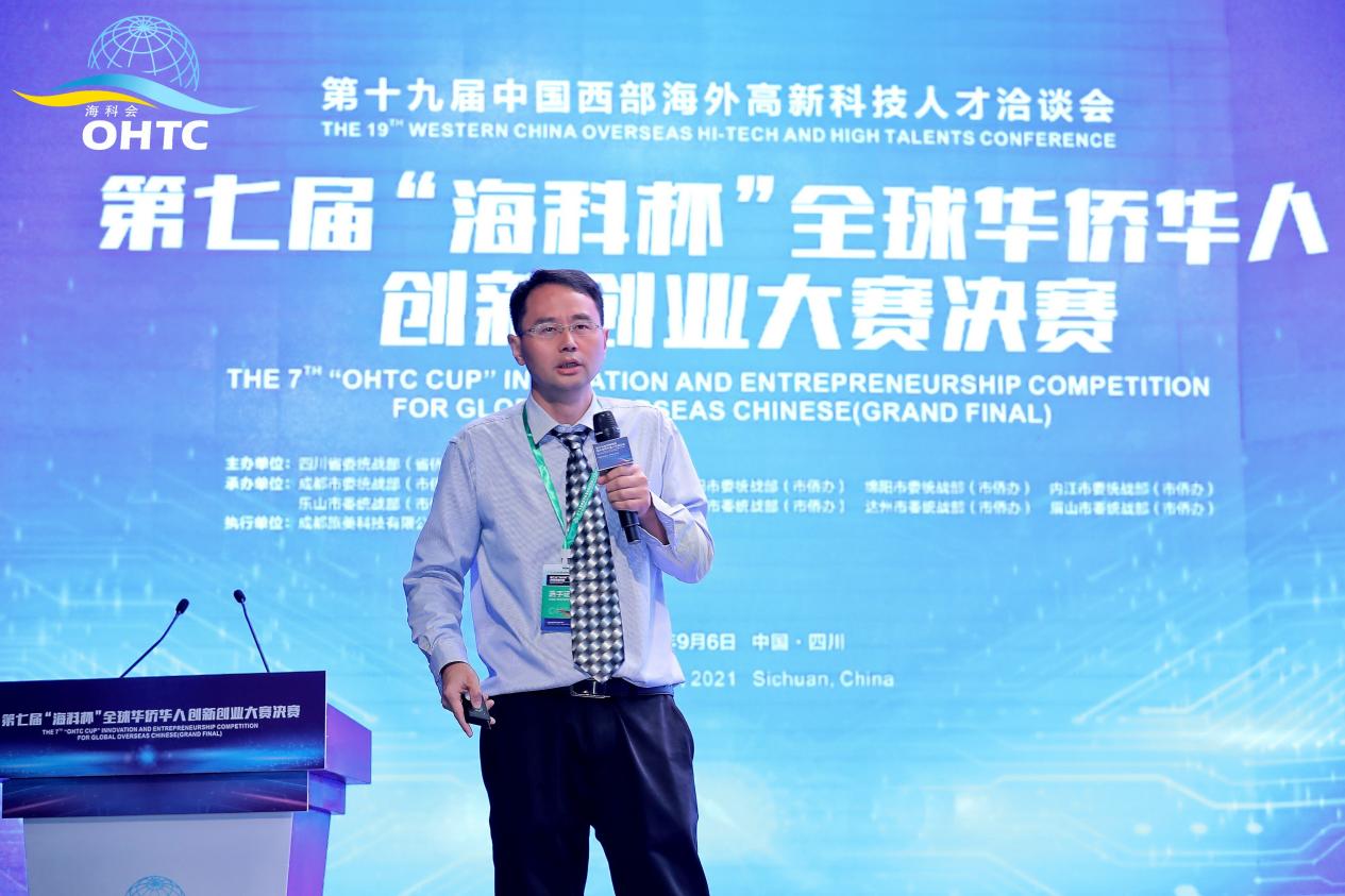 2021年9月6日,由四川省委統戰部(省僑辦)、四川省委組織部(省人才辦)主辦的第七屆“海科杯”全球華僑華人創新創業大賽決賽在成都高新區舉行。本屆“海科杯”吸引了來自全球37個國家,分布于先進制造、生物醫學、電子信息、文創與現代服務、新材料與節能環保五大領域的725個華僑華人創業項目報名。經過多輪篩選,共有100個項目進入半決賽,最終決出9個項目進入決賽。土木建筑學院吳旻教授帶著《新型制冷機》項目一路過關斬將最終以全場總分第二的優秀成績榮獲決賽二等獎,獎項由四川省省長黃強親自頒發。