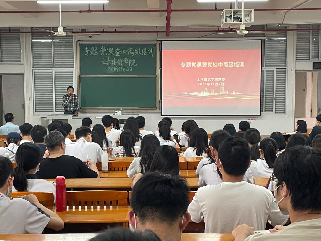 為進一步學習貫徹習近平法治思想,加強學生對于黨的紀律的理解和掌握,提高學生的法治修養(yǎng),2021年11月2日土木建筑學院黨委在北主樓教室301,組織開展了習近平法治思想學習會。吳卓強書記作了《深刻領(lǐng)悟習近平法治思想,做一個敬畏法紀、嚴以修身的新時代追夢人》專題講座。土木建筑學院全體入黨積極分子、發(fā)展對象參加了此次培訓。