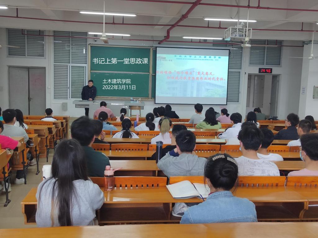 為貫徹落實《關于深化新時代學校思想政治理論課改革創新的若干意見》《廣東省教育廳關于做好2022年春季學期高校黨委書記、校長和院(系)黨組織書記、院長(系主任)及中小學黨組織書記、校長上第一堂思政課工作的通知》精神,2022年3月10日下午和2022年3月11日下午,土木建筑學院曾暉院長、吳卓強書記分別在北主樓402、201給2021級學生講授春季學期第一堂思政課。