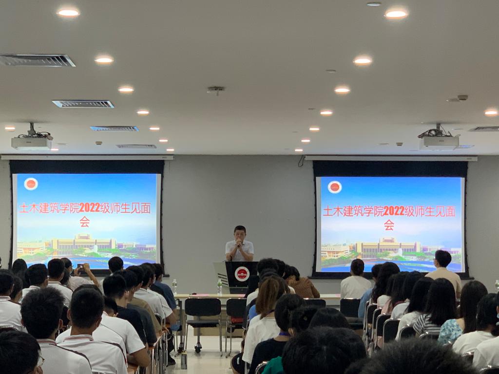 2022年9月2日,土木建筑學院在學生綜合服務中心209舉行了2022級師生見面會暨入學教育防詐騙專題講座,見面會分為線上和線下兩個會場進行。學院全體領導班子、2022級1至6班班導師、輔導員、各班學長及2022級新生學子共同參加了本次活動,會議由輔導員陳美玲主持。