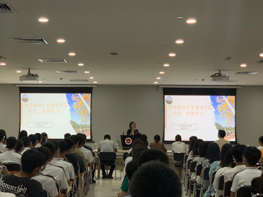 會上,曾暉院長首先對2022級土建新生學子的到來表示熱烈歡迎,她帶領新生回顧了學校37年的辦學歷程和學院國家特色專業建設點、國家專業綜合改革試點、省級一流本科專業建設點的專業發展,并從學院近況、培養方案、師資隊伍、學科競賽、學術科研、創業就業等全方面詳細介紹校院基本情況,期望同學們能踐行“好學、多思、求實、創新”校訓精神,努力成為祖國未來棟梁,把理想抱負熔鑄在腳踏實地的學習實踐中,在共圓中華民族偉大復興夢中放飛青春夢想、書寫人生華章。