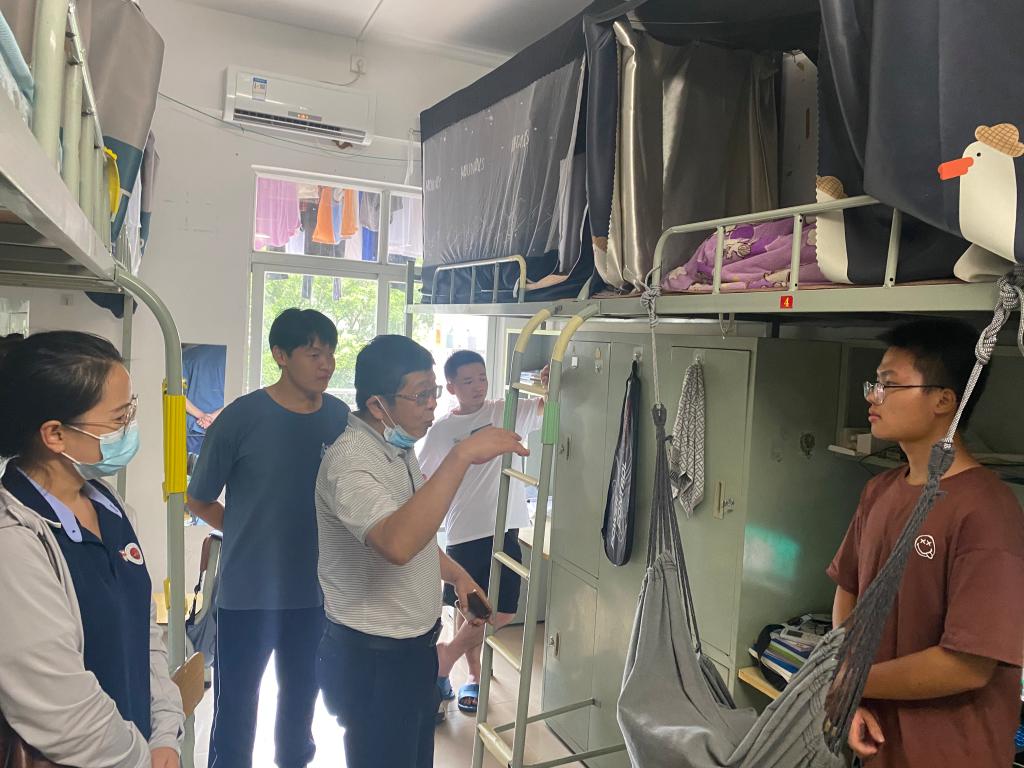 輔導(dǎo)員陳美玲向周飚副校長匯報土木建筑學(xué)院落實國慶期間疫情防控工作情況。周飚副校長強調(diào)在疫情防控中,一線工作人員要貼近學(xué)生,有理有據(jù)向?qū)W生講清疫情形勢,積極引導(dǎo)學(xué)生輿論,關(guān)注疫情期間學(xué)生思想動態(tài),及時有效化解學(xué)生困惑。隨后,學(xué)院黨委書記吳卓強、院長曾暉帶頭深入學(xué)生宿舍,了解學(xué)生上網(wǎng)課情況,為學(xué)生答疑解惑。9月27日以來,土木建筑學(xué)院班導(dǎo)師、輔導(dǎo)員深入班級召開主題班會,深入宿舍了解學(xué)生國慶去向,化解學(xué)生疑惑,引導(dǎo)同學(xué)們就地過節(jié)。(文/圖)
