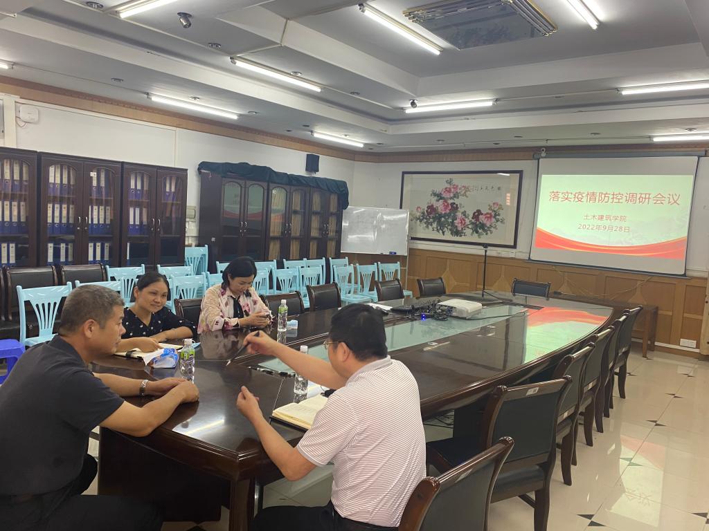 根據(jù)上級要求和《江門市新型冠狀病毒肺炎疫情防控指揮部辦公室關(guān)于做好2022年國慶節(jié)假期新冠肺炎疫情防控工作的通告》等有關(guān)精神,五邑大學(xué)副校長周飚于2022年9月28日下午來到土木建筑學(xué)院開展落實疫情防控調(diào)研工作。學(xué)院領(lǐng)導(dǎo)班、輔導(dǎo)員參加了本次會議。