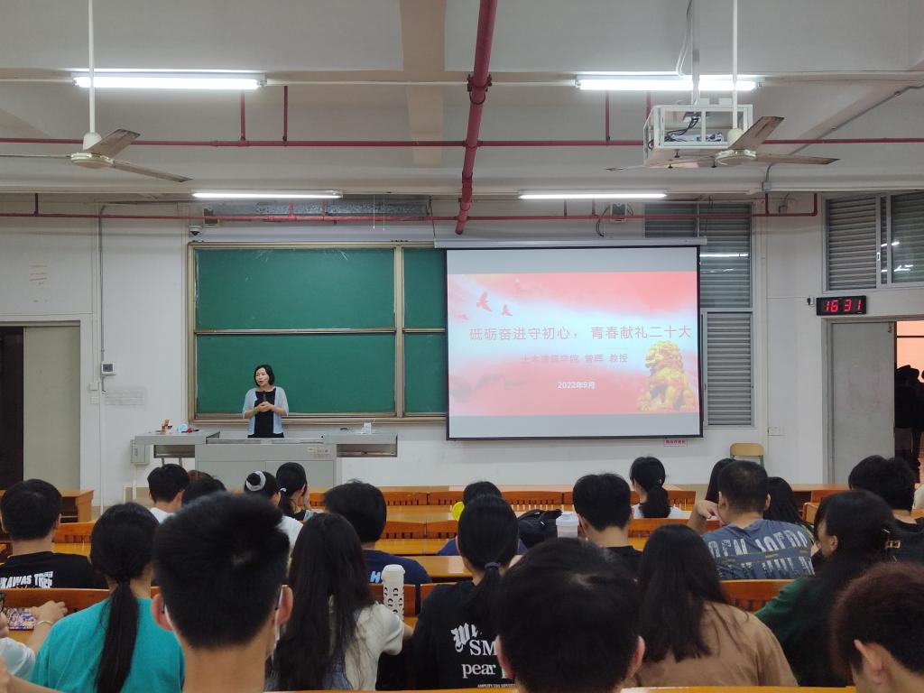 曾暉院長以“砥礪奮進守初心,青春獻禮二十大”為主題,帶領全體同學深入學習《習近平談治國理政》第四卷,通過講解“碳達峰”“碳中和”的概念和建筑業的發展,號召全體同學要加強專業學習,練就過硬本領,做一個有思想、有情懷、有擔當的社會主義建設者和接班人。