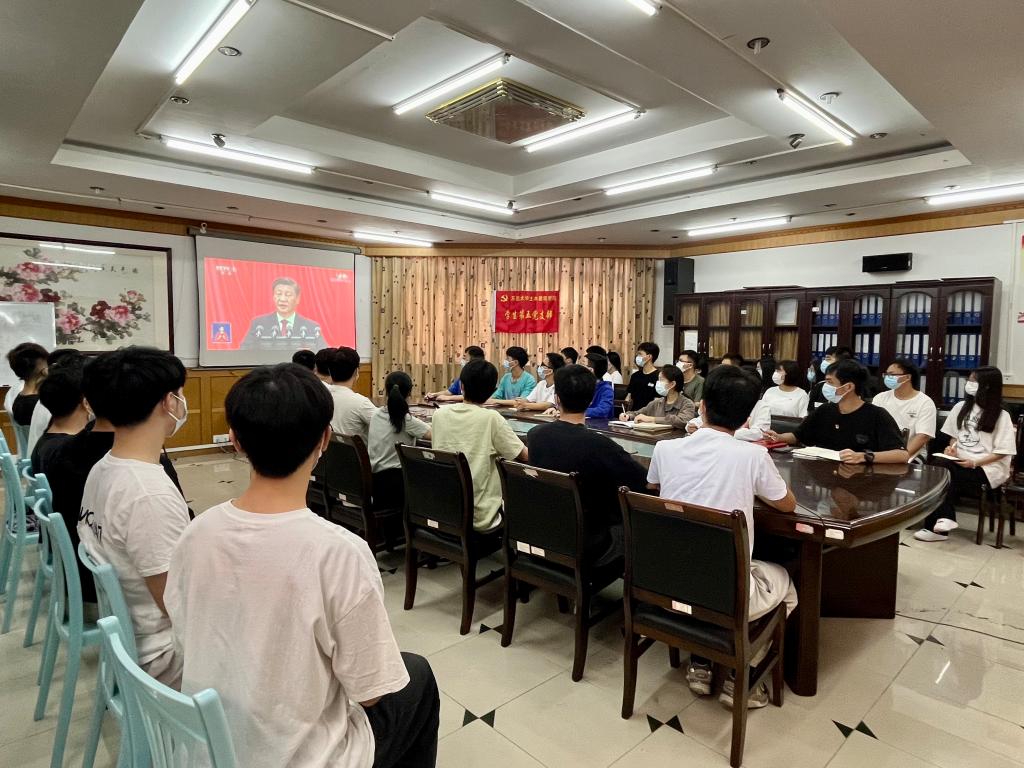 黨的二十大是在全黨全國各族人民邁上全面建設社會主義現代化國家新征程、向第二個百年奮斗目標進軍的關鍵時刻召開的一次十分重要的大會。習近平總書記的報告氣勢磅礴、思想深邃、催人奮進,與會的黨員都深受打動、鼓舞。支部書記陳桂表示,作為一名支部書記,應該帶頭先學一步、深學一步,把學習宣傳貫徹黨的二十大精神作為當前的首要政治任務,以實際行動忠誠擁護“兩個確立”,堅決做到“兩個維護”,切實把思想和行動統一到大會精神上來,統一到支部建設上來,在學習宣傳貫徹黨的二十大精神上走在前、作表率。與會黨員也紛紛發表心得體會,學生黨員林盛杰表示,“作為學生黨員,我將認真學習、深刻領悟黨的二十大重要意義和精神實質,踔厲奮發,勇毅前行,努力學習專業知識,發揮釘釘子精神,為黨實現第二個百年奮斗目標,貢獻自己的一份力量。”