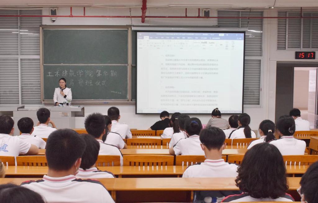 開班儀式在奏唱國歌中拉開序幕。土木建筑學院黨委書記吳卓強作動員講話。他首先肯定了第八期“青馬班”學員取得的優異成績,同時也對第九期“青馬班”學員寄予厚望,希望青馬學員學思踐悟黨的二十大精神,繼續砥礪深耕、篤行致遠,不斷增強引領力、組織力、服務力,用青春的能動力和創造力譜寫新時代絢麗華章。