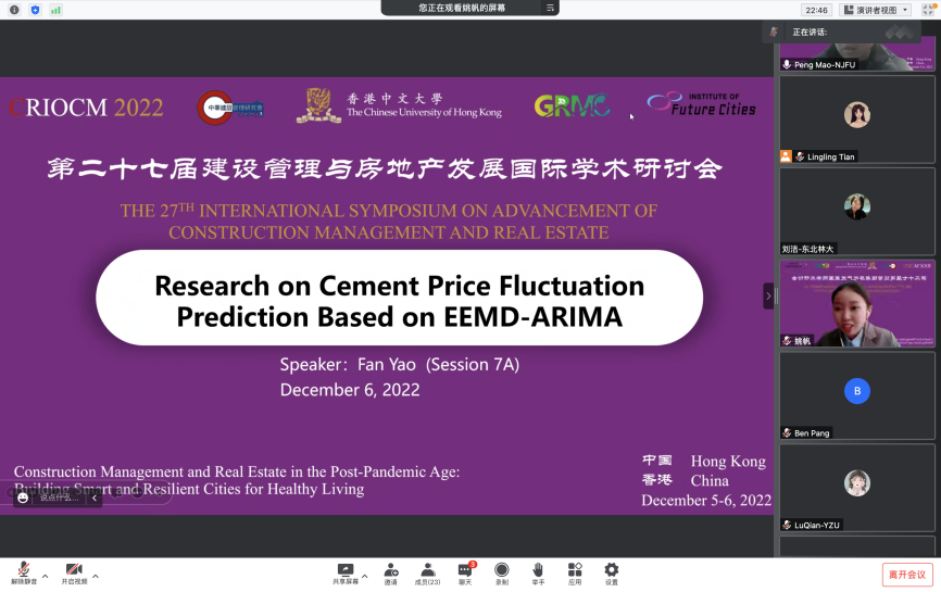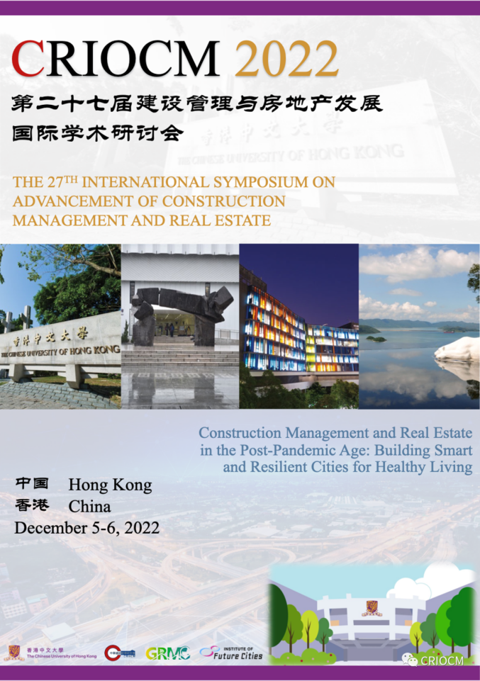 2022年12月5-6日,由中華建設管理研究會和香港中文大學主辦,香港中文大學地理與資源管理學系和香港中文大學未來城市研究所承辦的“第二十七屆建設管理與房地產發展國際學術研討會”(CRIOCM 2022,The 27th International Symposium on Advancement of Construction Management and Real Estate)在線上成功舉行。本次研討會吸引了來自187所不同高校、科研院所、企事業單位的625位建設管理與房地產領域的專家及學者參與會議投稿,涉及中國大陸、中國香港、澳大利亞、英國、美國、加拿大、巴西、愛爾蘭、日本、馬來西亞、荷蘭、新加坡、泰國、越南等14個國家和地區。學者們圍繞本次會議主題“后疫情時代的建設管理和房地產為健康生活建設智慧和韌性城市”進行了精彩和熱烈的分享和討論。