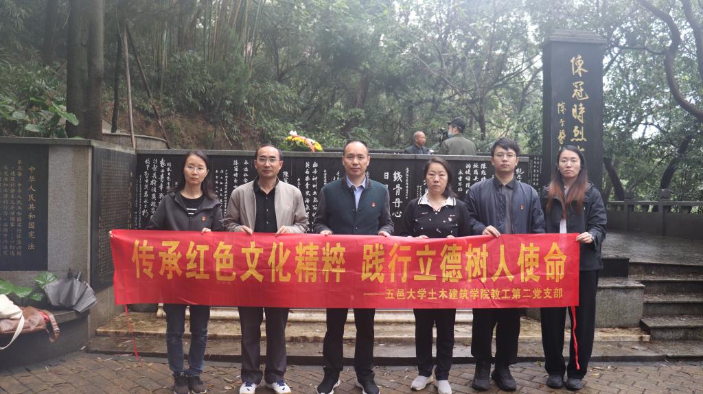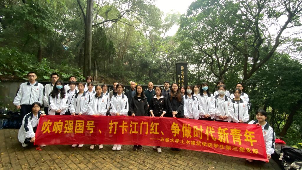 2023年4月2日,五邑大學土木建筑學院教工第二黨支部、學生第三黨支部師生前往江門市茶庵寺陳冠時烈士墓園開展清明節祭掃活動。通過本次活動表達對革命先烈的哀思和懷念,激勵師生銘記紅色歷史、繼承光榮傳統,為實現中華民族偉大復興的中國夢不懈奮斗。