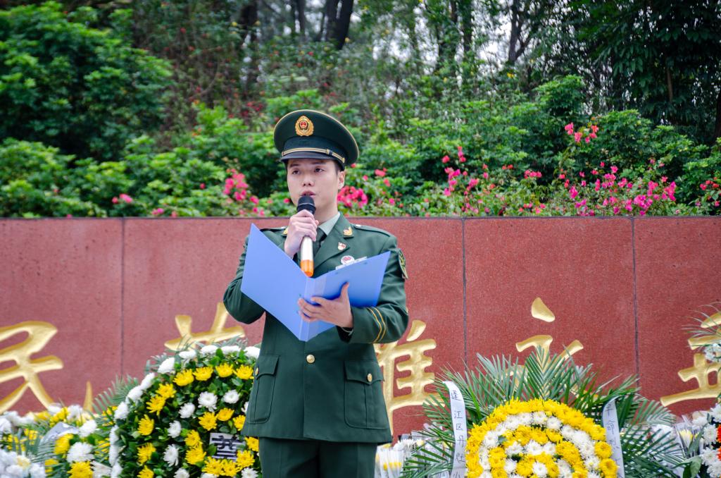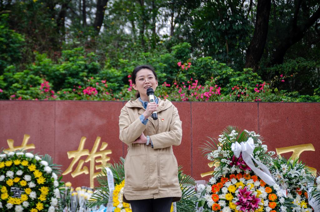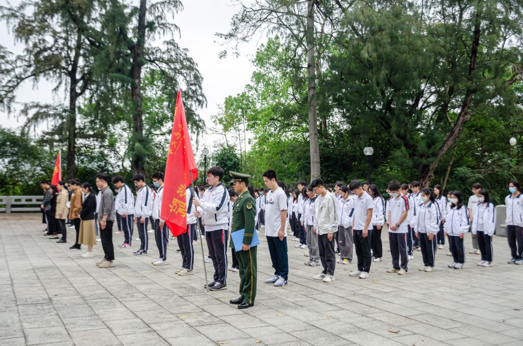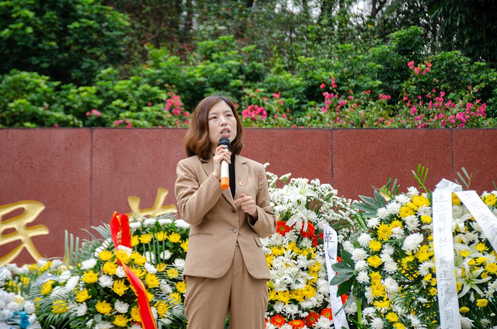 活動(dòng)伊始,全體人員奏唱國(guó)歌并默哀3分鐘,表達(dá)對(duì)革命先烈的崇高敬意。隨后,江門市宣講團(tuán)成員、馬克思主義學(xué)院黨委副書記劉露曉老師結(jié)合當(dāng)下時(shí)政熱點(diǎn)和全民國(guó)家安全教育日的到來給現(xiàn)場(chǎng)師生講授團(tuán)課,她勉勵(lì)同學(xué)們發(fā)揚(yáng)先烈的革命精神,堅(jiān)定理想信念,永遠(yuǎn)保持愛國(guó)情懷,為實(shí)現(xiàn)中華民族偉大復(fù)興貢獻(xiàn)力量。退伍學(xué)生代表黃宇東、徐子穎同學(xué)作學(xué)生代表發(fā)言,號(hào)召同學(xué)們將“愛國(guó)志”轉(zhuǎn)換成“報(bào)國(guó)行”,在思想與行動(dòng)上努力向黨靠攏,致敬英雄,勤學(xué)報(bào)國(guó)。最后,生物科技與大健康學(xué)院黨委副書記(主持工作)王婷老師總結(jié)發(fā)言,師生代表向革命先輩敬獻(xiàn)鮮花,深切緬懷。