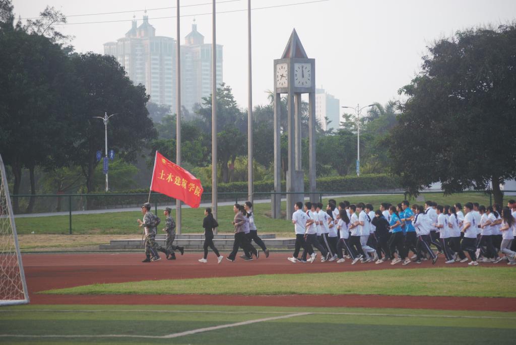 在輔導員及學院退伍士兵代表的帶領下,繞運動場試慢跑兩圈。在活動期間,學生自律委員會負責活動組織、活動宣傳及活動實施,記錄各班級、各學生考勤,確保活動展現效果,達到活動預期目的。