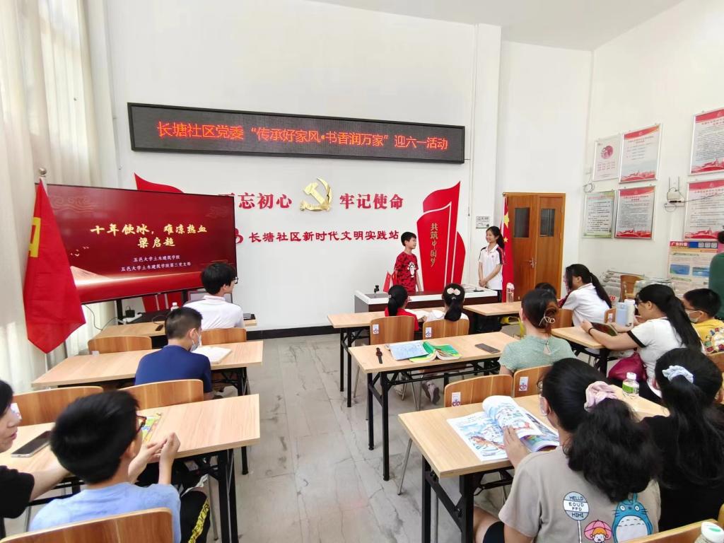 為深入學習貫徹習近平新時代中國特色社會主義思想和黨的二十大精神,匯聚青春動能助力江門“十百千 ”基層實踐三年行動計劃順利開展,2023年5月27日,土木建筑學院聯合結對社區——長塘社區開展第一階段的“傳承好家風,書香潤萬家”的主題活動。