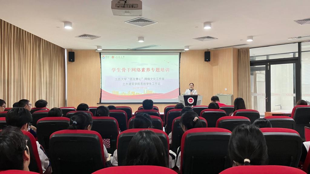 為了充分發揮網絡育人功能,打造一批具有良好網絡素養的學生骨干,2023年10月10日,五邑大學“邑見青心”網絡文化工作室和土木建筑學院易班學生工作站聯合開展了學生骨干網絡素養專題培訓。培訓采取了專題講座、主題研討、經驗分享、互動交流等形式進行,約100余人參加。