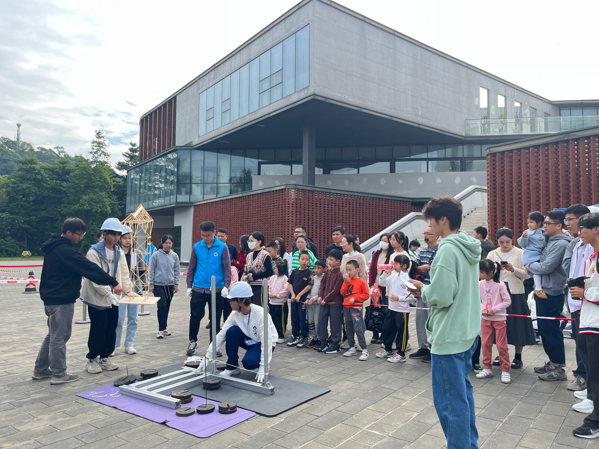 緊接著,大家在講解員的帶領(lǐng)下參觀了五邑大學(xué)土木建筑學(xué)院第十八屆結(jié)構(gòu)設(shè)計大賽現(xiàn)場,了解模型制作要求及結(jié)構(gòu)加載方式,大家紛紛稱贊學(xué)生們的創(chuàng)新設(shè)計能力和動手實踐能力,被濃厚的校園學(xué)術(shù)氛圍吸引。