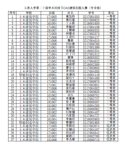 為營造我校學生良好的學術氛圍,由共青團五邑大學主辦、土木建筑學院承辦的第二十屆學術科技節CAD制圖大賽已圓滿結束。