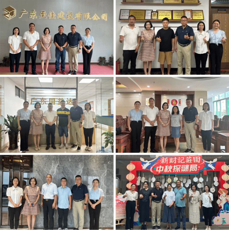 兩天行程中,書記院長一行走訪了江海區自然資源局、廣東駿景灣地產集團有限公司、廣東聚源建設集團有限公司、天堃集團國際投資有限公司、廣東中坤資產評估土地房地產估價咨詢有限公司、廣東眾正建設有限公司、廣東至佳建設有限公司、廣東恒建建設工程有限公司、廣東同益達工程顧問有限公司、廣東千福田工程造價咨詢有限公司、永信和瑞工程咨詢有限公司和江門新財記莊園餐飲公司,與校友們深入交流。