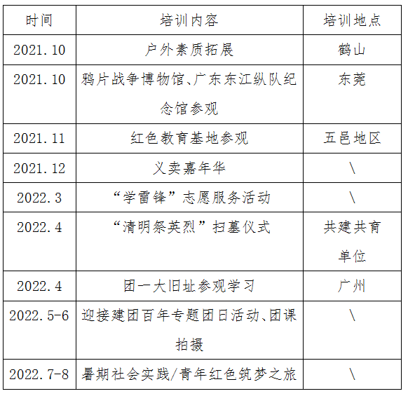 本次培訓(xùn)班對(duì)學(xué)員開(kāi)展理想信念教育和社會(huì)實(shí)踐教育,依托黨史學(xué)習(xí)教育、五邑僑鄉(xiāng)紅色文化和共建共育單位資源,開(kāi)展為期一年的跟蹤培養(yǎng),參與素質(zhì)拓展、理論學(xué)習(xí)、線(xiàn)上學(xué)習(xí)討論、社會(huì)實(shí)踐及志愿服務(wù)鍛煉活動(dòng)等,完成讀書(shū)筆記、調(diào)研報(bào)告、總結(jié)報(bào)告等,把握?qǐng)?jiān)持黨的領(lǐng)導(dǎo)、突出核心目標(biāo)、注重實(shí)踐導(dǎo)向、遵循育人規(guī)律總要求,凸顯“青馬工程”加強(qiáng)青年政治引領(lǐng)功能效應(yīng),在各行業(yè)各領(lǐng)域切實(shí)為黨培養(yǎng)和輸送一批具有忠誠(chéng)的政治品格、濃厚的家國(guó)情懷、扎實(shí)的理論功底、突出的能力素質(zhì)的青年政治骨干。