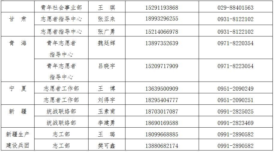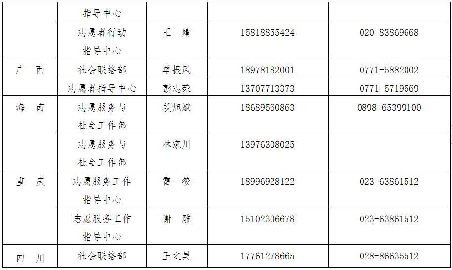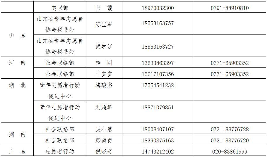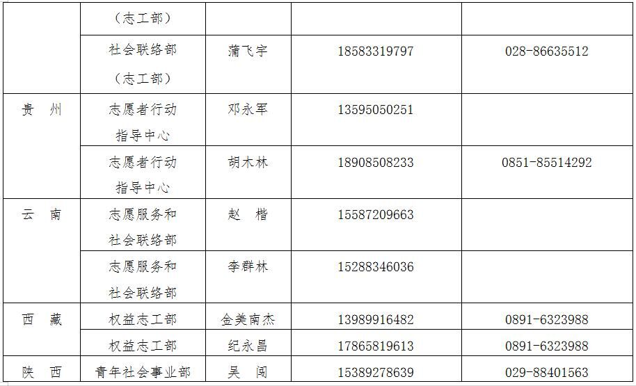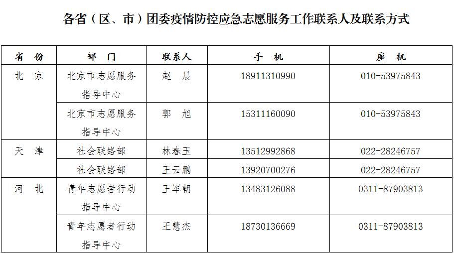 1. 疫情防控應急志愿服務工作省級聯系人及聯系方式