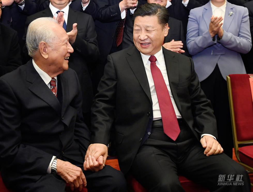 中共中央總書記、國家主席、中央軍委主席習近平向獲得2020年度國家最高科學技術獎的中國航空工業集團有限公司顧誦芬院士(右)和清華大學王大中院士(左)頒獎。