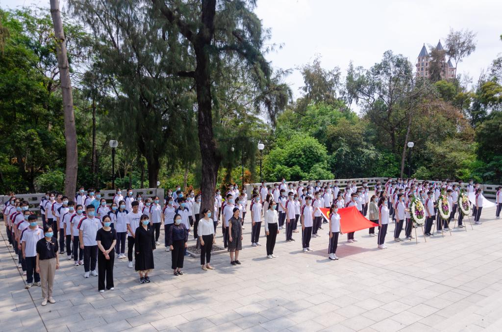 3月30日中午,校團委組織全體教師團干、第七期校青馬學員、校三會學生干部前往江門市英雄山烈士陵園,參加“學黨史、強信念、跟黨走”學習教育系列活動之“清明祭英烈”掃墓儀式,緬懷革命先烈,傳承紅色基因,爭做時代新人。