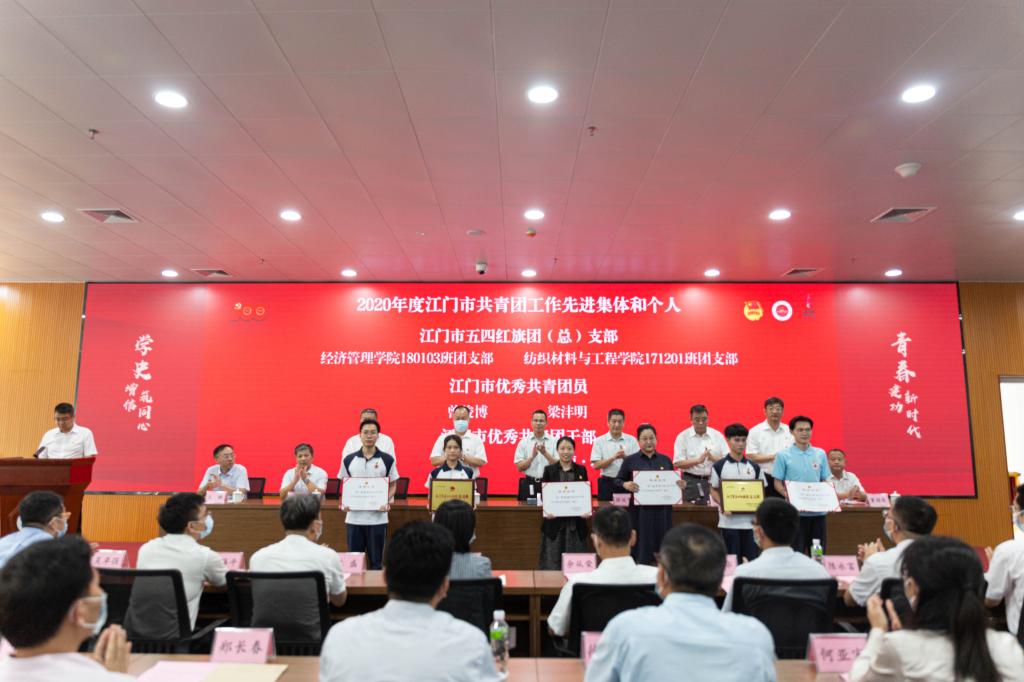 全體校領導為2020年度江門市共青團工作先進集體和個人、五邑大學共青團工作先進集體和個人、“活力提升”工程優秀組織獎獲獎單位、2020年度“邑大之星”獲得者頒獎并表示祝賀。
