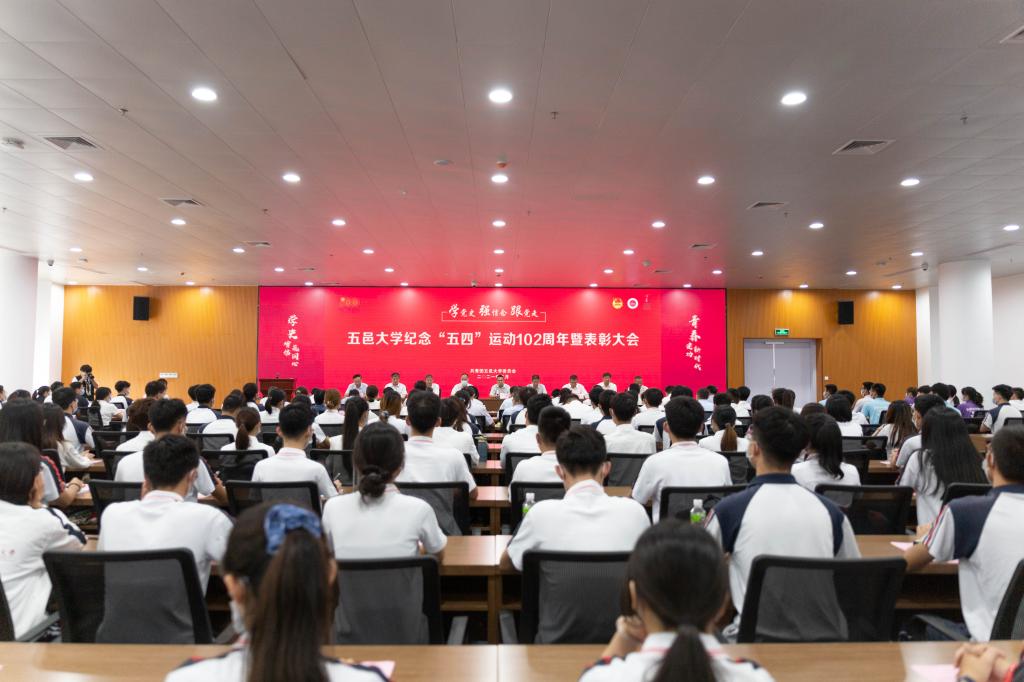 2021年5月7日下午,在莊嚴的國歌聲中,五邑大學紀念五四運動102周年暨表彰大會在策文商學院大樓副樓204報告廳召開。校黨委書記張焜、校黨委副書記、校長張運華等全體校領導及相關職能部門負責人、學院(部)黨組織書記、副書記、團總支書記、團員代表等師生出席了大會。大會由校黨委副書記、宣傳部部長、統戰部部長李靄康主持。