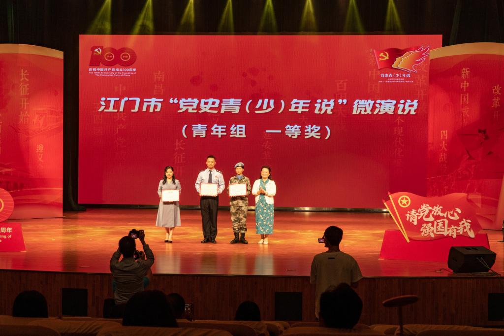 10月9日,由市委黨史學習教育領導小組辦公室、市委宣傳部主辦,團市委承辦的江門市“黨史青(少)年說”微演說決賽在市文化館舉行。市委常委、宣傳部部長陳冀,省委黨史學習教育第三巡回指導組相關同志與市有關部門單位分管領導出席活動并觀看比賽。經過激烈的角逐,五邑大學宋艷婷同學以總分第一的成績榮獲青年組一等獎。