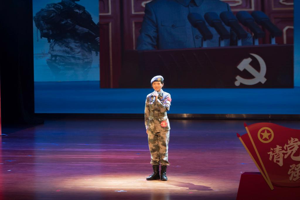 在青年組決賽舞臺上,16組選手逐一上臺競技,以黨的發展歷史的重要事件、人物,或身邊的黨員、紅色家書家訓、革命先烈英雄事跡等為切入點,緬懷歷史、致敬先輩、展望未來,以積極向上的青年之聲傾情述說黨的故事,立下“請黨放心、強國有我”的青春誓言。來自我校外國語學院的宋艷婷同學以《青春在軍營中閃光》為題,作為退伍大學生的她動情分享了她在黎巴嫩執行維和任務的難忘經歷,呼吁青年朋友們堅定跟黨走的信心和決心,在學思踐悟中堅定理想信念,在奮發有為中踐行初心使命,勇擔時代重任,不負黨和人民的殷切期望。