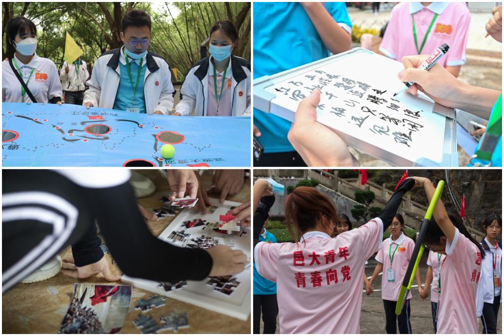 “革命一定要勝利,敵人終將被埋葬。”西門廣場上,青馬學員誦讀著紅色經典史詩《長征組歌——告別》,開啟本次素拓。登山期間,學員們一路走一路歌,唱響《沒有共產黨就沒有新中國》。在狀元坊等多處平臺,大家以團小組為單位開展“長征印記”主題路線重走、拼圖拼接、默寫接力等互動環節,并現場展示《七律?長征》硬筆書法、軟筆書法作品。歷時近2小時,全體學員在山頂紀元塔下勝利“會師”,共同聆聽《長征組歌——大會師》誦讀,分享拼圖所展示的紅軍長征途中重大歷史事件。