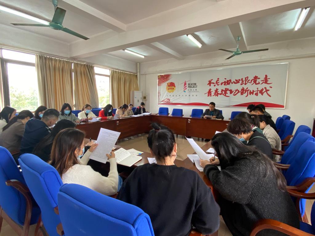 (校團委組織帶領全體團總支書記、學生會指導老師學習全會公報,交流分享黨的十九屆六中全會學習感悟)