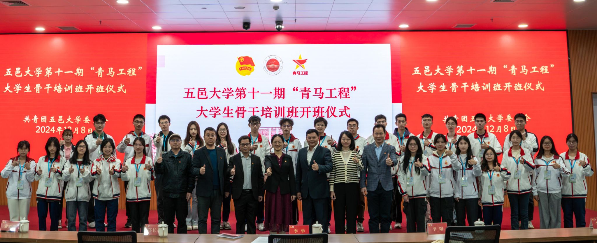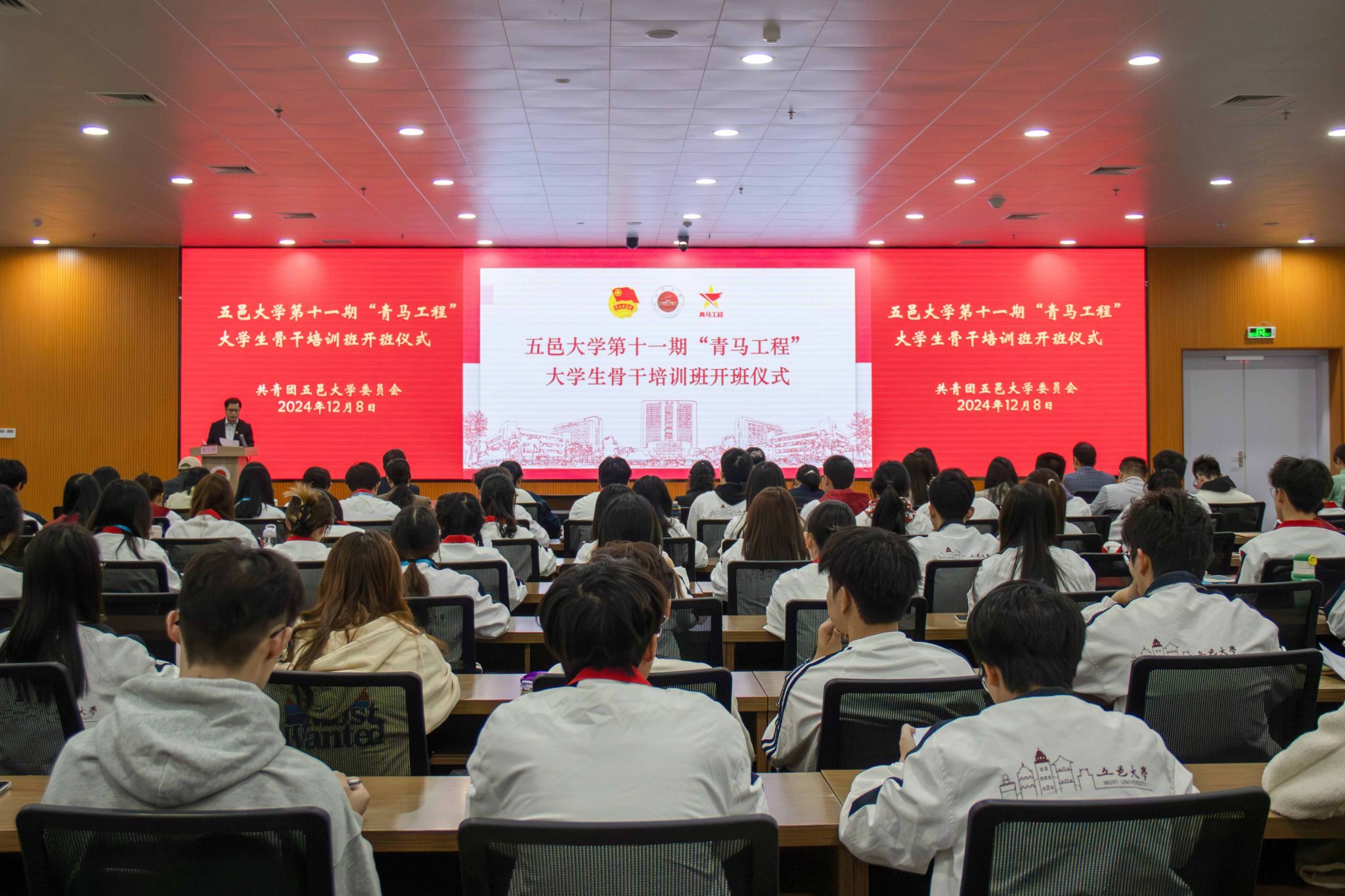 12月8日下午,五邑大學第十一期“青馬工程”大學生骨干培訓班開班儀式在策文商學院大樓副樓204報告廳舉行。校黨委副書記李華出席并講話,黨委組織部、校團委等職能部門負責人,教務處全面育人中心主任,各學院黨委副書記、團委書記、副書記,五邑大學第十期“青馬工程”優秀學員代表、第十一期“青馬工程”全體學員參加開班儀式。