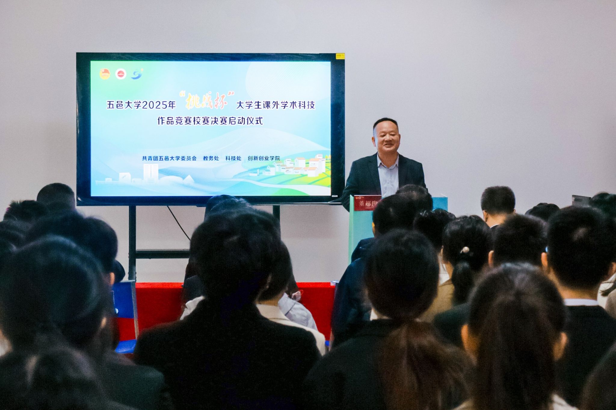 為進一步貫徹落實習近平總書記關于科技創新的重要指示精神,引導促進大學生面向國家重大需求,踴躍投身科研攻關第一線,發揮教育、科技、人才的基礎性、戰略性支撐作用,營造良好校園科技創新文化氛圍,2月22日,由校團委、教務處、科技處、創新創業學院聯合舉辦的五邑大學2025年“挑戰杯”大學生課外學術科技作品競賽校賽終審決賽順利舉行。校黨委常委、副校長董超俊出席啟動儀式并前往比賽現場觀摩指導,相關職能部門負責人、評審專家、校團委全體老師、學院團委書記/副書記、參賽項目學生負責人參加了本次活動。