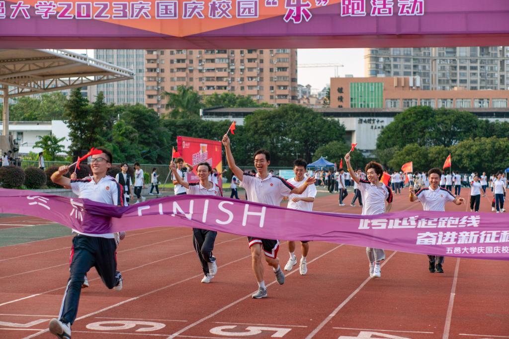 為慶祝中華人民共和國成立74周年,向偉大的祖國送上邑大師生的真摯祝福,9月28日下午,“跨越起跑線,奮進新征程——五邑大學慶國慶校園‘樂’跑活動”在學校田徑運動場舉行。近1000名師生齊聚一堂,以奔跑的姿態抒發愛國愛校之情,用拼搏精神砥礪報國之志,揮灑汗水書寫絢麗的青春篇章。校黨委副書記李靄康、相關職能部門負責人、各學院(部)黨委副書記、團組織負責老師、各學院(部)師生代表等參加活動。