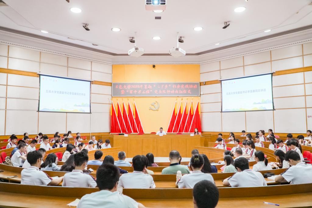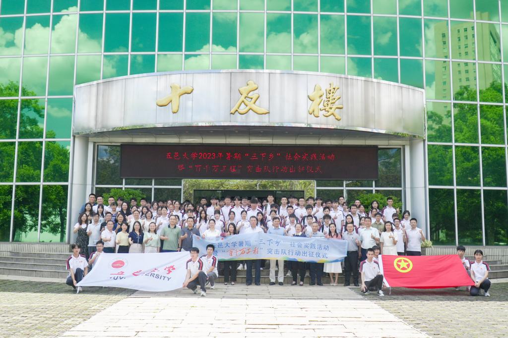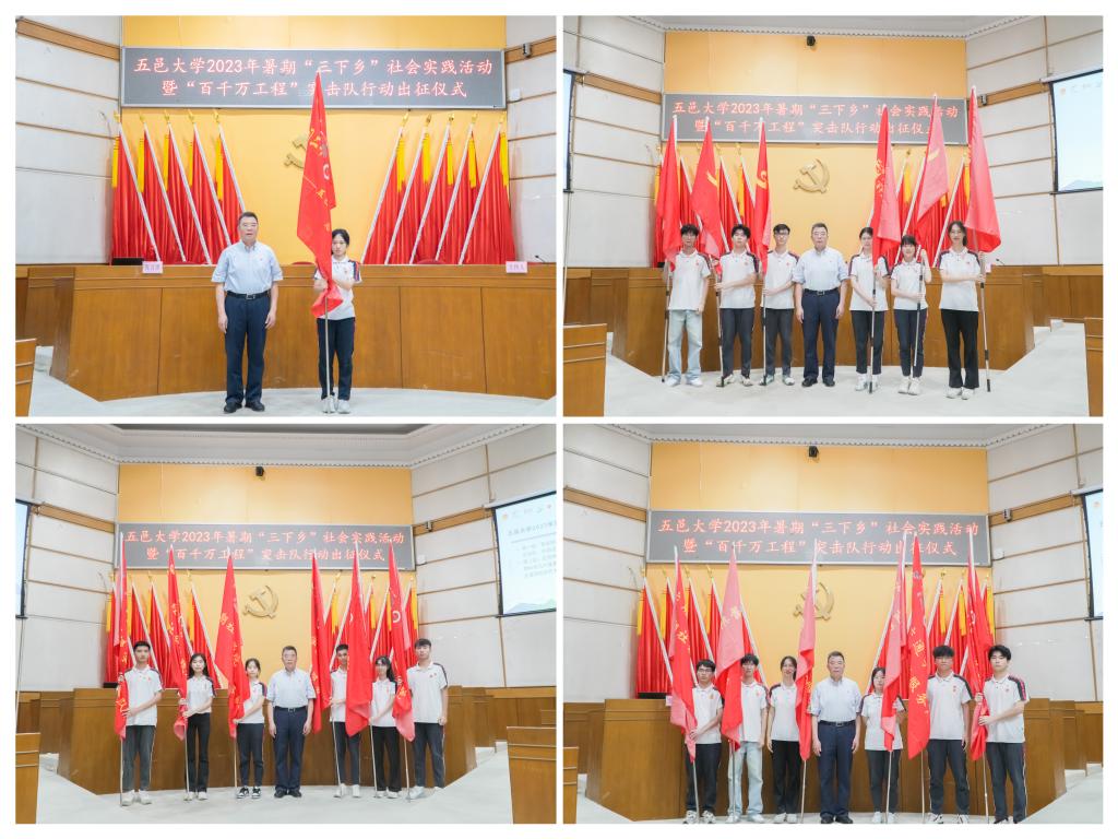 7月11日下午,五邑大學(xué)2023年暑期“三下鄉(xiāng)”社會實踐活動暨“百千萬工程”突擊隊行動出征儀式在十友樓舉行。校黨委副書記李靄康出席,學(xué)校相關(guān)職能部門負(fù)責(zé)人、各學(xué)院(部)黨委副書記、團組織負(fù)責(zé)人、青協(xié)指導(dǎo)老師及我校廣東青年大學(xué)生“百千萬工程”突擊隊代表、暑期社會實踐隊伍代表參加此次活動。