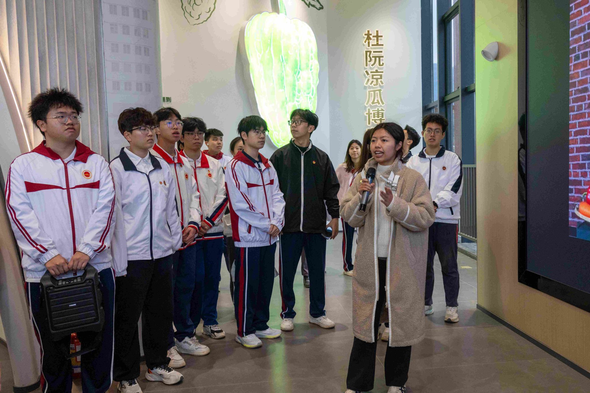 隨后,師生前往杜阮涼瓜博覽館參觀研學(xué),見證了涼瓜產(chǎn)業(yè)的深厚底蘊(yùn)與蓬勃活力,領(lǐng)略杜阮鎮(zhèn)特色產(chǎn)業(yè)與 “百千萬工程” 協(xié)同推進(jìn)結(jié)出的累累碩果。