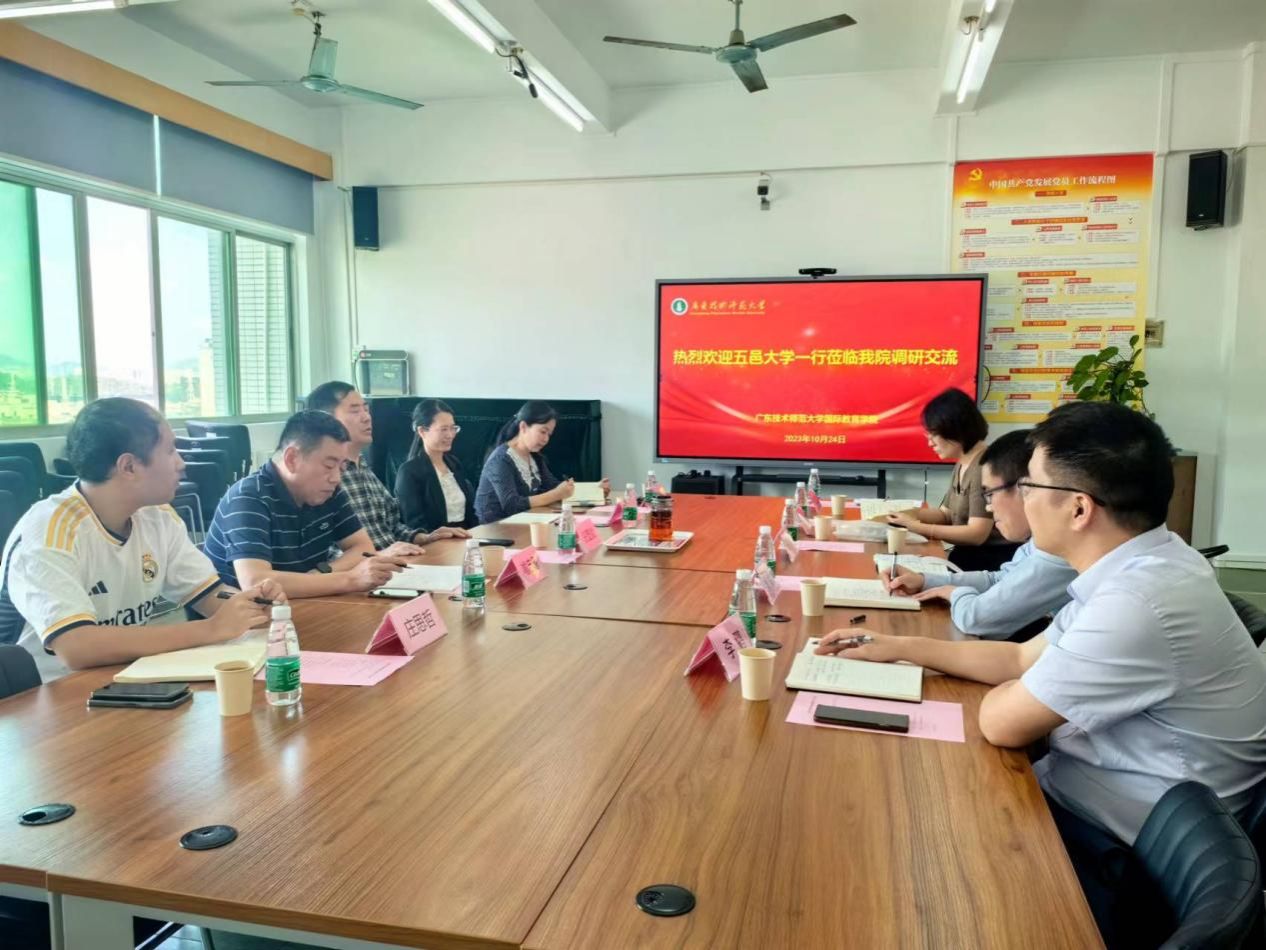 10月24日下午,我校外事處處長王純陽、教務(wù)處副處長黃鋼、招生辦主任李鵬、外事處副處長孫婭、科長張繼君一行赴廣東技術(shù)師范大學(xué)國際教育學(xué)院就國際化辦學(xué)調(diào)研交流。
