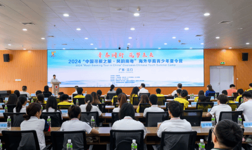 7月31日,由中國僑聯主辦,廣東省僑聯、五邑大學、江門市僑務局、江門市僑聯承辦,團江門市委、江門市關工委協辦的2024“中國尋根之旅·風韻南粵”海外華裔青少年夏令營(廣東江門營)在五邑大學開營,來自美國、法國、比利時、希臘等國家近40名華裔青少年來到僑都江門開啟“尋根之旅”。五邑大學黨委書記欒天罡,江門市僑聯黨組書記、主席林春暉出席開營儀式并致辭,美國廣東僑胞聯合總會名譽主席、美國紐約廣府人總會顧問陳偉棠,夏令營領隊老師和營員等出席開營儀式。開營儀式由江門市僑聯副主席利俊義主持。