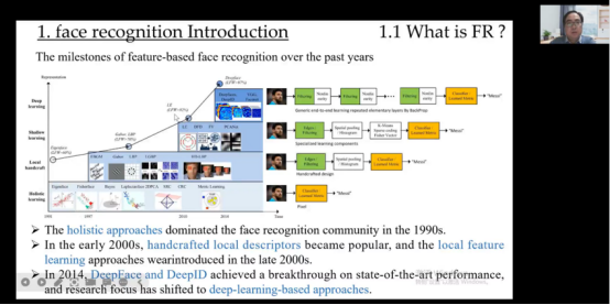 翟懿奎教授作了題為“Face Recognition Technology and It's Application”的講座。介紹了人臉識別技術在視頻監控、心理情緒分析、安全認證等領域的廣泛應用,以及人臉檢測、人臉識別、人臉合成、人臉對齊、臉部表情識別等技術的具體應用,同時介紹了該領域的新興研究方向。