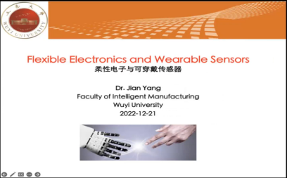 楊建教授作了題為“Flexible electronics and wearable sensors”的講座,結合新一代信息技術的發展趨勢以及當前智能機器人與生命健康領域的內在需求,以現代晶體管和傳感器的基本組成與結構為主線,從材料力學的角度簡明講述柔性電子與可拉伸電子的理論基礎、加工方法、封裝測試等基礎知識與發展趨勢,講述可穿戴傳感器的設計原理、制備工藝與性能測試等基本硬件系統知識,并以柔性微流控角膜接觸鏡、電阻式觸覺傳感器等具體實例講授可穿戴傳感器的工作原理、制備方法與實際應用。