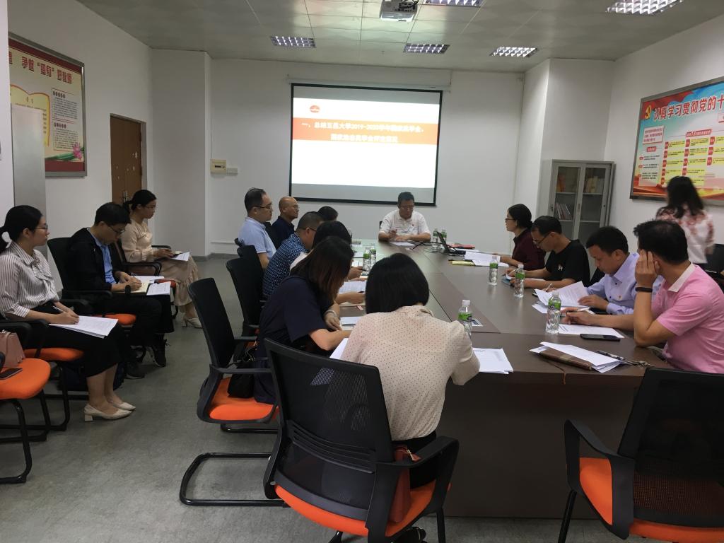 10月12日下午,學校在南主樓233室召開2019-2020學年國家獎學金、國家勵志獎學金資助工作領導小組會議,校黨委副書記李靄康、校資助工作領導小組成員參加會議。
