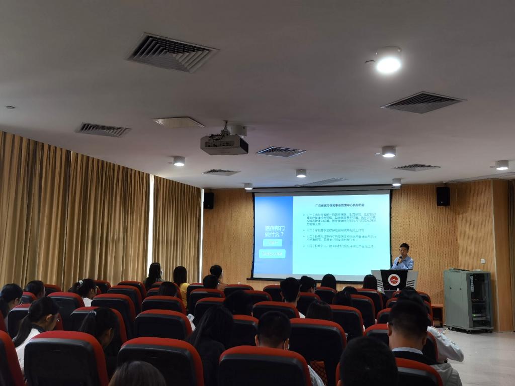 為向全校師生普及江門(mén)市城鄉(xiāng)居民基本醫(yī)療保險(xiǎn)知識(shí)、介紹城鄉(xiāng)居民醫(yī)療保險(xiǎn)相關(guān)政策,11月12日下午,學(xué)生處在學(xué)生服務(wù)中心314報(bào)告廳組織開(kāi)展了五邑大學(xué)2021年度江門(mén)市城鄉(xiāng)居民基本醫(yī)療保險(xiǎn)政策解讀宣講會(huì)。參加此次宣講會(huì)的人員有:江門(mén)市醫(yī)療保障局蓬江分局、蓬江區(qū)社會(huì)保險(xiǎn)基金管理局及蓬江區(qū)環(huán)市街道人力資源和社會(huì)保障服務(wù)所有關(guān)人員,學(xué)生處老師、各學(xué)院輔導(dǎo)員老師及學(xué)生代表、學(xué)生發(fā)展協(xié)助委員會(huì)部分成員。