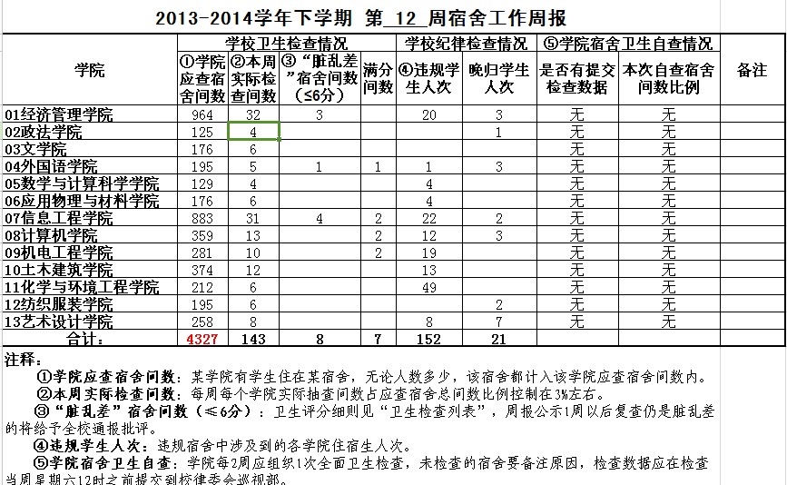 2013-2014-2第10-12周宿舍周報