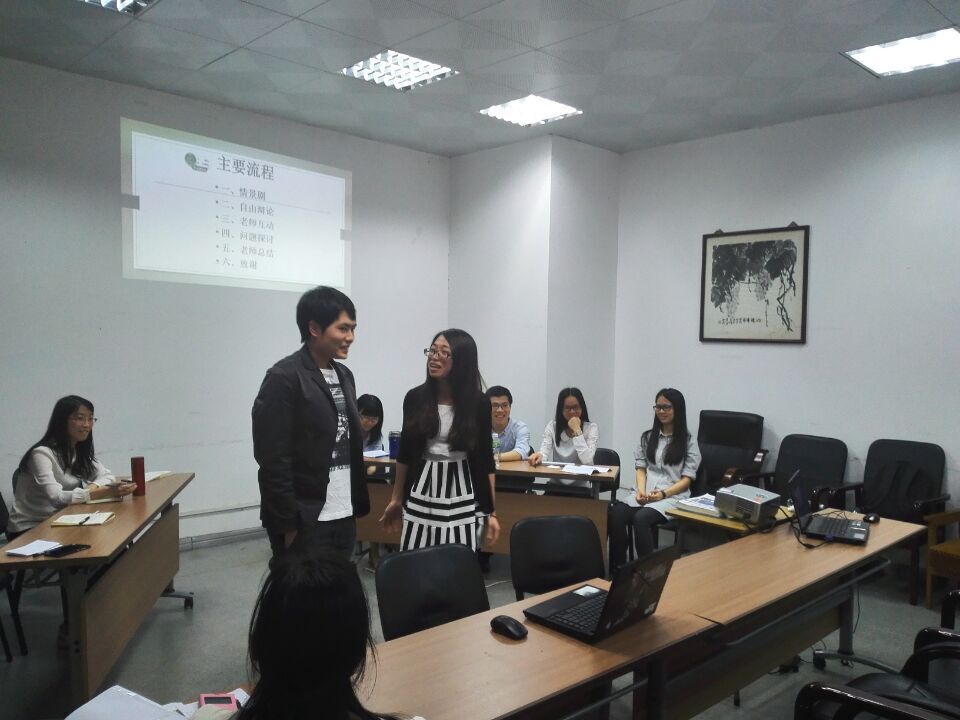 沙龍由實習輔導員自編自導的一幕短小輕松的情景劇引出此次主題,其展示大學生談戀愛的情境。由實習輔導員組成正反辯論隊開始就“當學生戀愛了,輔導員是喜還是憂”展開辯論;接著,請在職輔導員老師參與到自由辯論,高麗麗老師代表正方從個人發展、社會支持兩個方面認為學生談戀愛,輔導員應“喜”;林永添和王姍老師代表反方認為輔導員應該考慮學生談戀愛引發各種問題,生動表達了輔導員“先喜后憂、乍喜還憂、喜大于憂”的真實心理,幾位老師的精彩發言點沸了全場氣氛的熱點。最后,實習輔導員就“學生談戀愛引發的問題”從經濟、學習、人際關系、心理四個方面發表了各自的觀點。沙龍進入尾聲,計算機學院王英老師對本次沙龍做總結,肯定本次沙龍的形式新穎,主題貼近輔導員生活,現場參與度高;同時指出本次情景劇、自由辯論穿插的形式應注意把握好以“輔導員”的角度來安排內容環節。