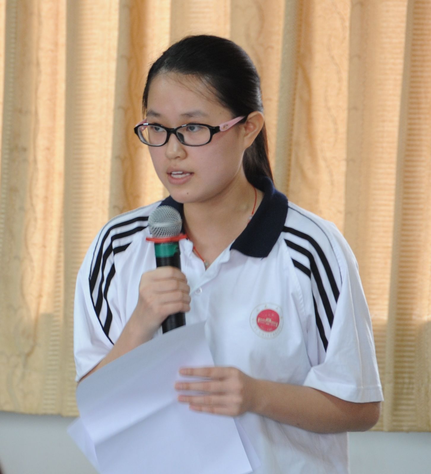 我校文學院漢語言文學專業謝楓同學發言,感謝新富源集團對我校學生的關心和資助,并表示自己會珍惜現在來之不易的生活,時刻銘記新富源集團的濟困之情,把這種美德傳承下去,回饋社會。