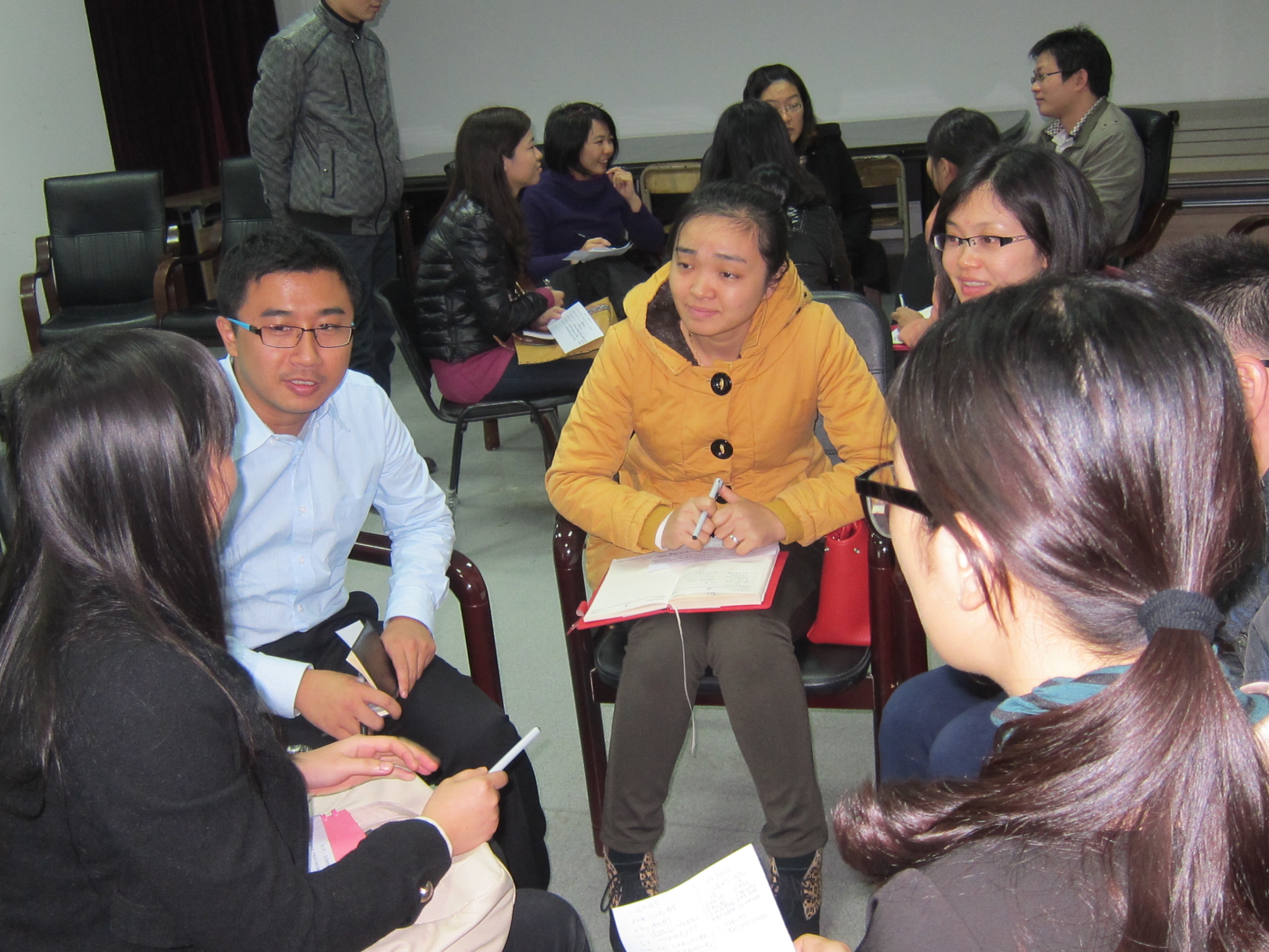 11月28日晚,五邑大學第四期輔導員沙龍在南主樓就業(yè)洽談1室舉行。全體輔導員及學生處全體人員參加了活動?;顒佑删蜆I(yè)指導學術團隊負責主持。 本期輔導員沙龍以“高校生涯團體輔導”為主題,土木建筑學院黨總支副書記李華、數(shù)學與計算科學學院輔導員羅海、機電工程學院輔導員張平和應用物理與材料學院輔導員何婉平四位老師現(xiàn)場分享了省廳培訓內(nèi)容與實操心得。