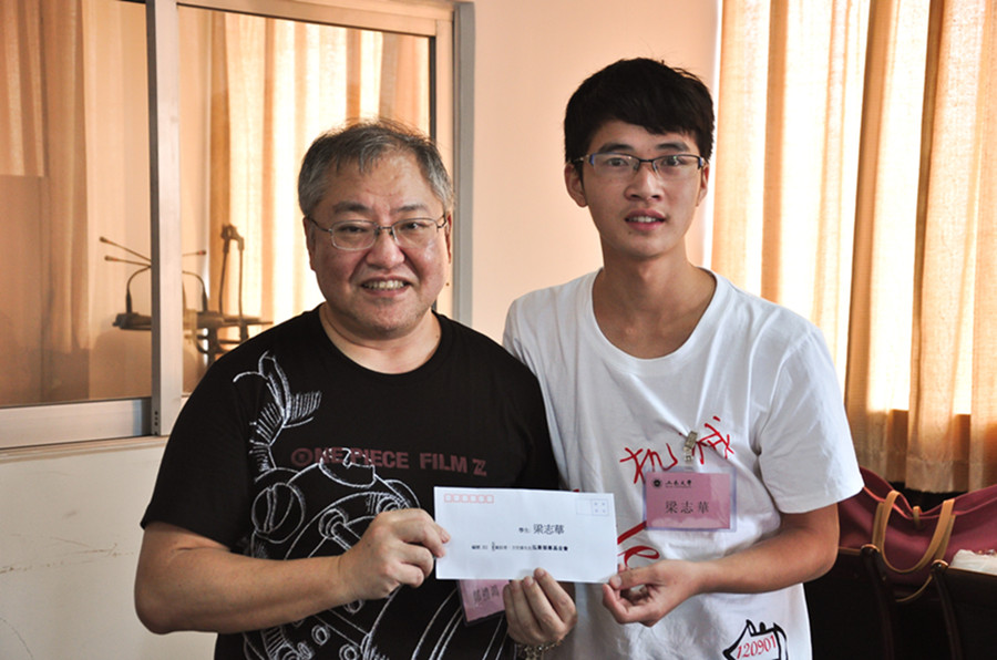 受助學生積極發言,紛紛表示經過三次助學活動與愛心人士的深入交流,他們被愛心人士樂觀向上的人生態度所感染。因為愛心人士的鼓勵,有的積極參加各種活動鍛煉自己;有的及時調整自己的學習狀態,重新確定學習目標;有的學習愛心人士的慈善行為,在課外參加義工活動,傳遞愛心。基金會愛心人士看到學生的成長深受感動,激勵學子們要不怕困難,敢于吃苦,奮發學習,活在當下,珍惜眼前。其中一對愛心人士當場決定下次助學活動再多資助一名學生。活動現場其樂融融,溫馨感人。受助學生集體向基金會贈送了我校藝術系學生楊濤創作的國畫《僑鄉》以表謝意。