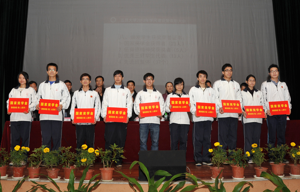 最后,校領導依次為2012年南粵優秀教師、江門市優秀教師、優秀教育工作者,國家獎學金、伍舜德精神獎、優秀三好學生代表、先進班集體頒獎。(學生工作部)