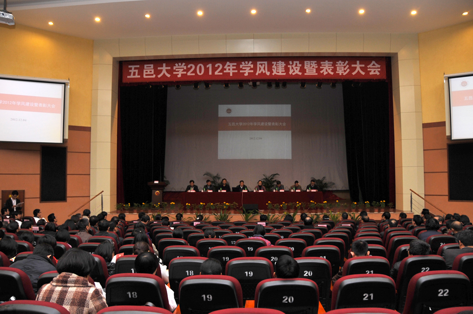 12月4日下午3時,五邑大學2012年學風建設暨表彰大會在呂志和禮堂隆重舉行。大會的主題是貫徹《教育部關于全面提高高等教育質量的若干意見》,培養學生的創新意識、提高實踐能力。校黨委王克書記、張運華副書記、譚海鷗副校長、張國雄副校長及相關職能部門負責人出席大會。參加大會的還有各學院(系)黨總支書記(副書記)、分管教學的副院長、教學系(教研室)主任、輔導員、班導師代表和學生代表。大會由教務處董超俊處長主持。