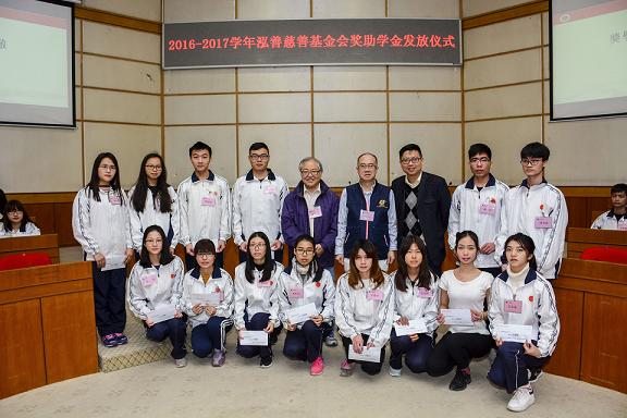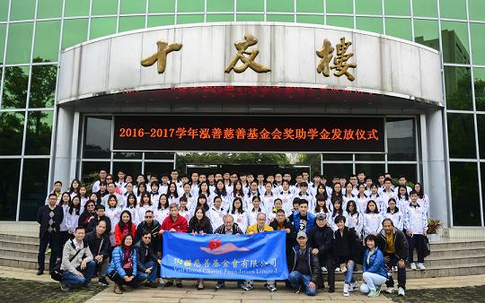 泓善慈善基金會本著關懷共獻、造福社會的宗旨,自2012年以來,每學年來五邑大學開展三次助學活動,親自為受助學生發放助學金與愛心棉被,自費與學生共進午餐,交流心聲,在2015年設立了泓善基金會獎學金以獎勵優秀學生。泓善慈善基金會開展助學活動5年來,共資助家庭經濟困難學生322名,資助金額共76.56萬元;共獎勵優秀學生35名,獎勵金額共7萬元。基金會簡約、溫馨、務實的助學風格,給師生留下了深刻印象。(文/圖 學生處)