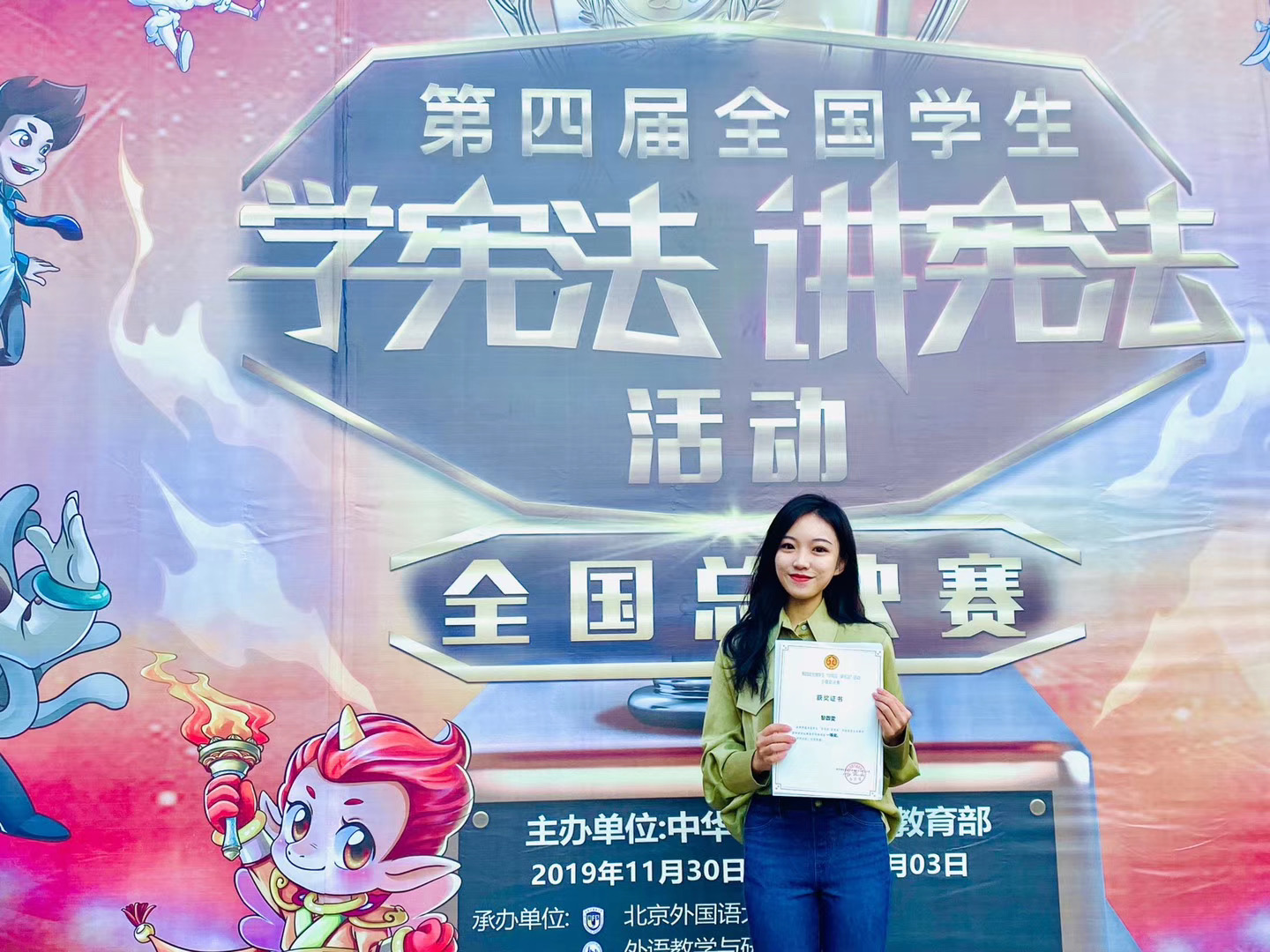 黎御雯熱心公益,回報社會,是政法學院黨員服務中心辦公室部長,2019年獲第四屆全國學生“學憲法 講憲法”活動全國總決賽演講比賽一等獎、廣東省“優秀共青團員”稱號、廣東省第四屆全國學生“學憲法 講憲法”活動 演講比賽 一等獎、首屆廣東省大學生版權知識演講大賽三等獎。